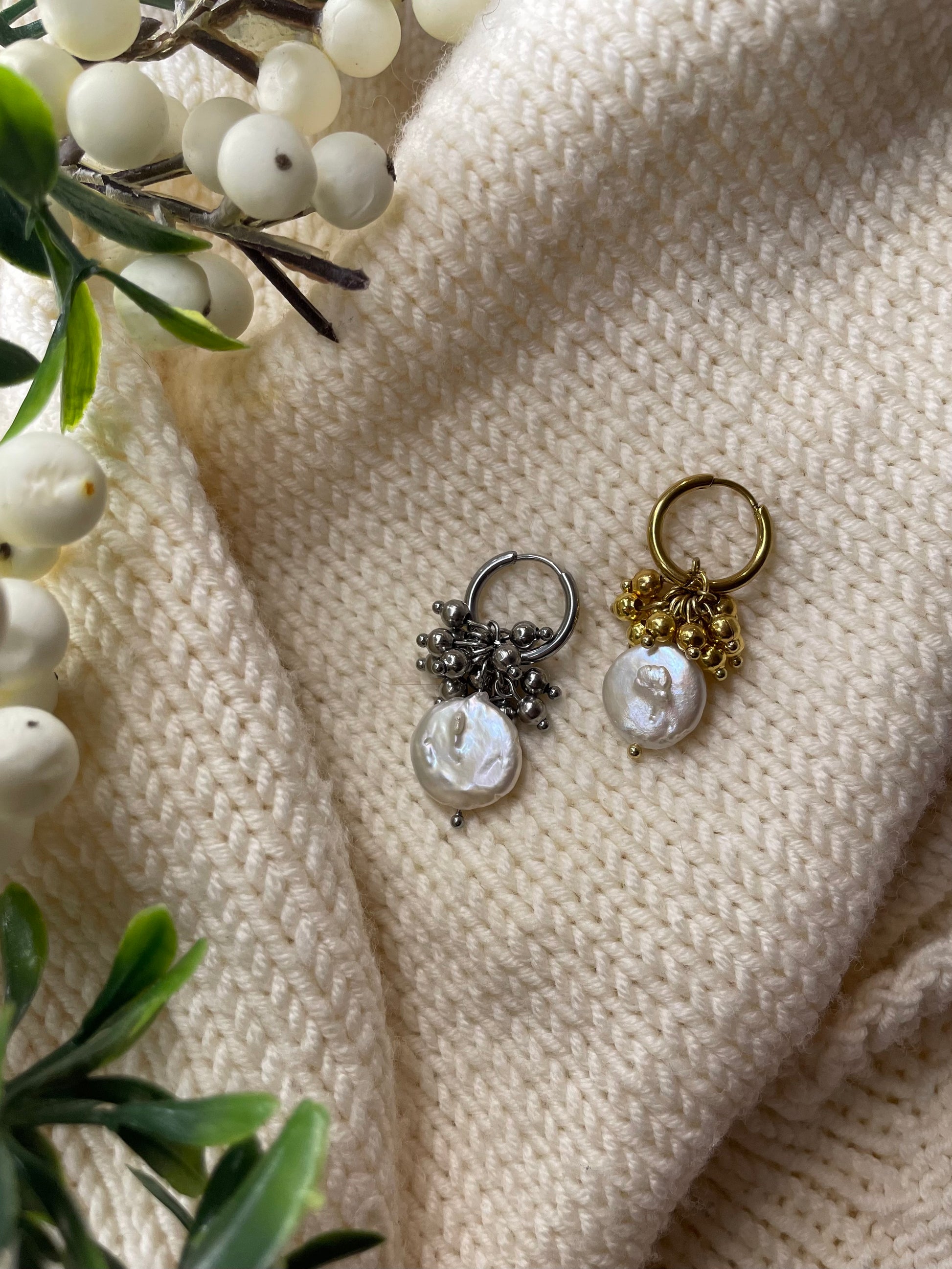Leona — Kevyet, näyttävät ja ajattoman tyylikkäät helmikorvakorut metallisilla yksityiskohdilla.